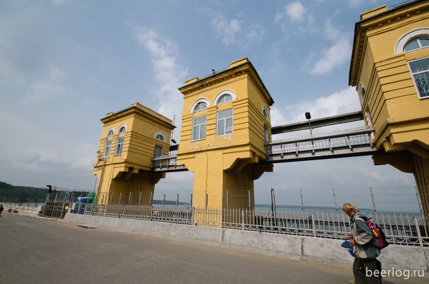 Еще в Заречном есть монументальная плотина, построенная, опять же, для атомной станции. Плотина перекрывает реку Пышму, и перепад высот выглядит внушительно: