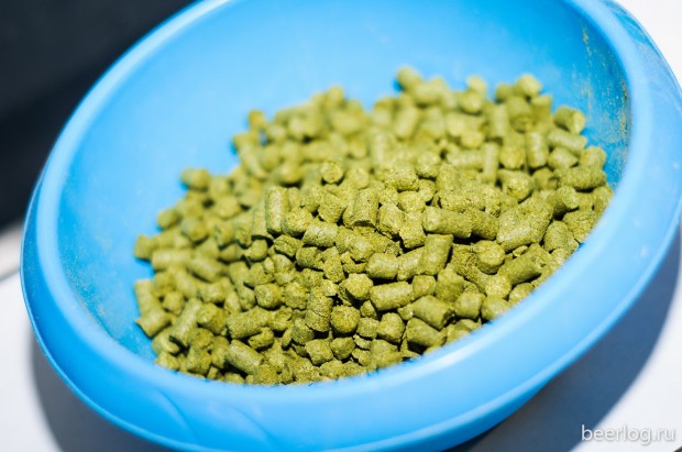 В начале кипения задали немного хмеля Магнум для горечи (альфа кислотность около 15%). Хмеля для ароматики рецепт не предусматривает, тут вся ароматика должна создаваться дрожжами и специями.