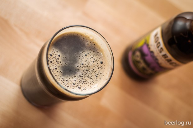Темно-бордовый цвет, даже ближе к черному — но фото выше хорошо видно, как свет едва-едва пробивается в правой части бокала в виде двух маленьких красных точек. Пена совсем небольшая, но при том липкая и неоднородная. Благородный и достаточно яркий аромат горького шоколада (из тех, что с высоким процентным содержанием какао-бобов), заметна кофейность, ирис и темные сухофрукты.